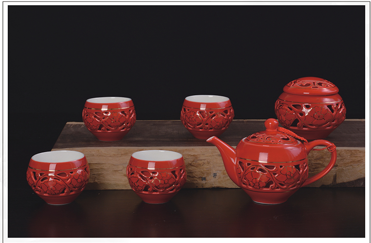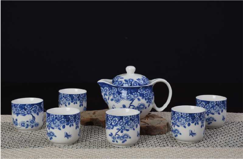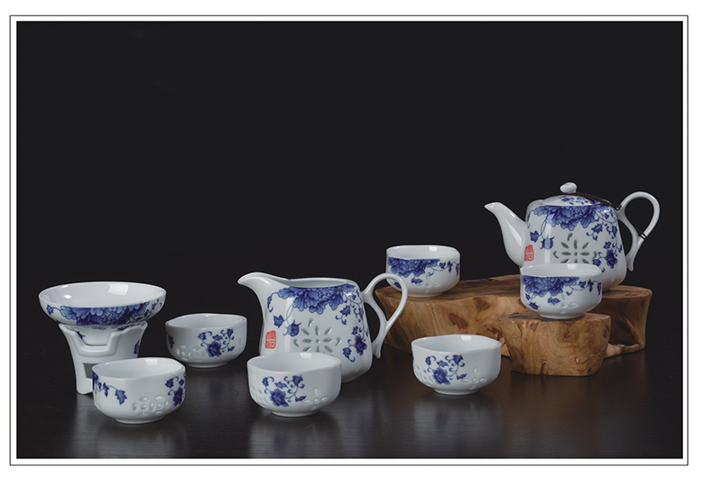 - 青花玲珑瓷富贵牡丹茶具